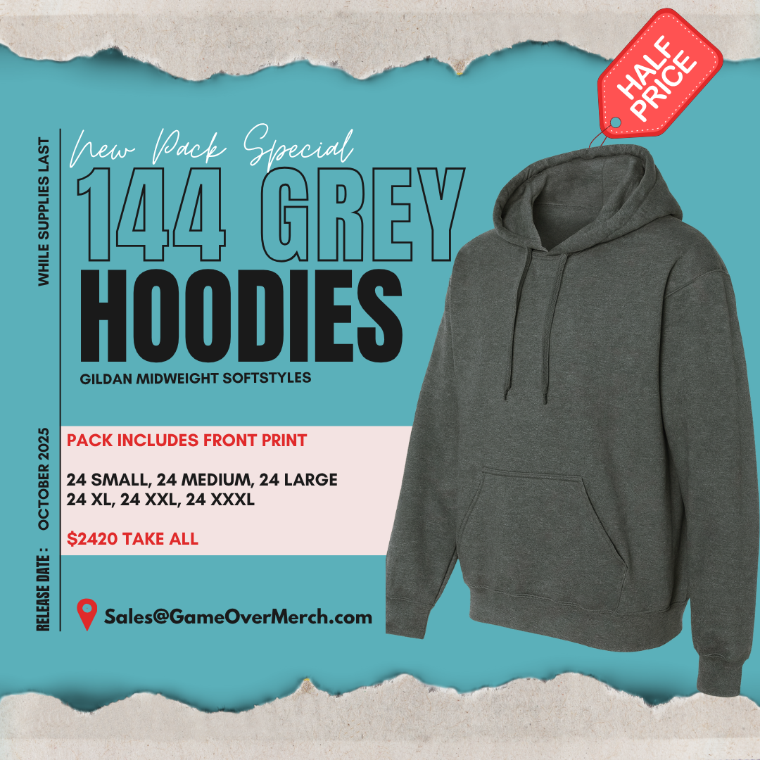 Dark Heather Grey: 24 small, 24 medium, 24 large, 24 xl, 24 xxl, 24 xxxl