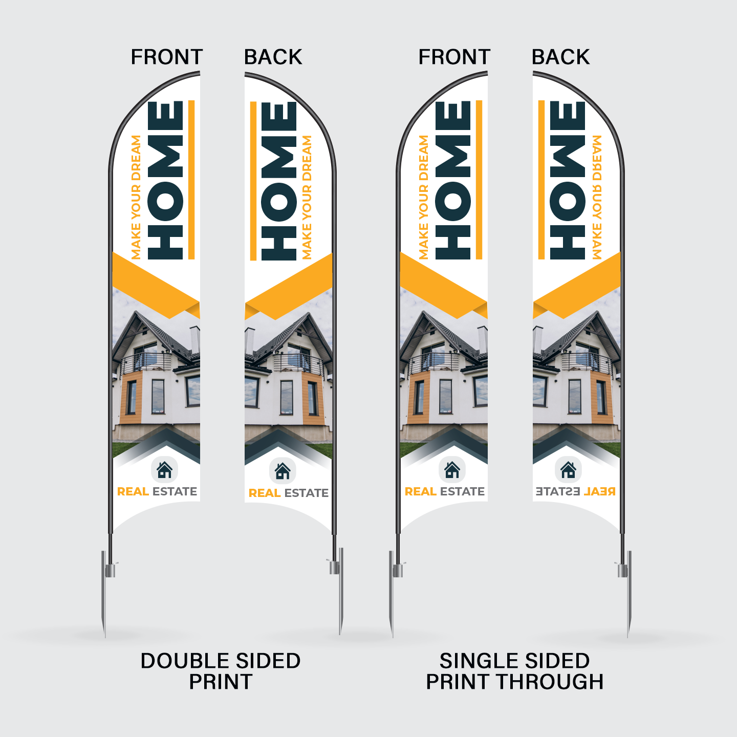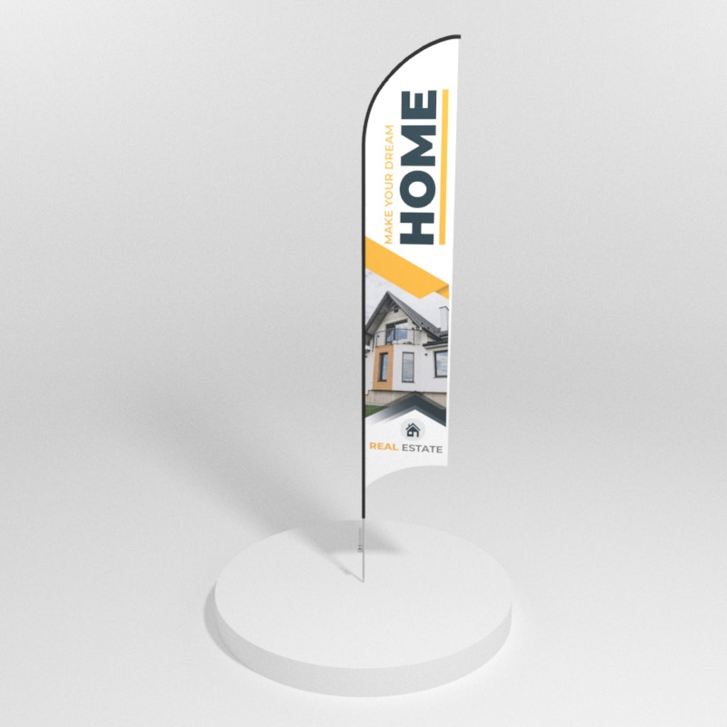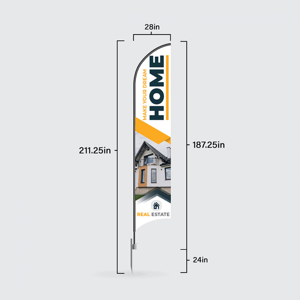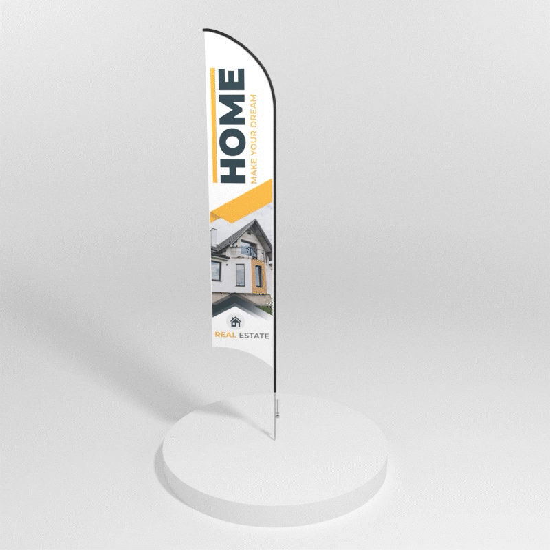 Advertising flags like this Feather Flag have gained immense popularity as they offer numerous advantages for effective message communication. Their unique shape, vibrant colors, and dynamic movement are specifically designed to catch attention, distinguishing them from other advertising tools and enticing people towards your business. Additionally, their versatility allows them to be used in various settings, making them a flexible and adaptable choice for advertising. Moreover, advertising flags are cost-effective compared to other methods, as they can be used repeatedly without incurring additional expenses. By prominently featuring your company logo, colors, and messaging, these flags contribute to increased brand awareness, effectively establishing and reinforcing your brand identity. Furthermore, the installation process is hassle-free, requiring no special tools or equipment, ensuring quick and easy setup. Advertising flags serve as an excellent means to promote your business.