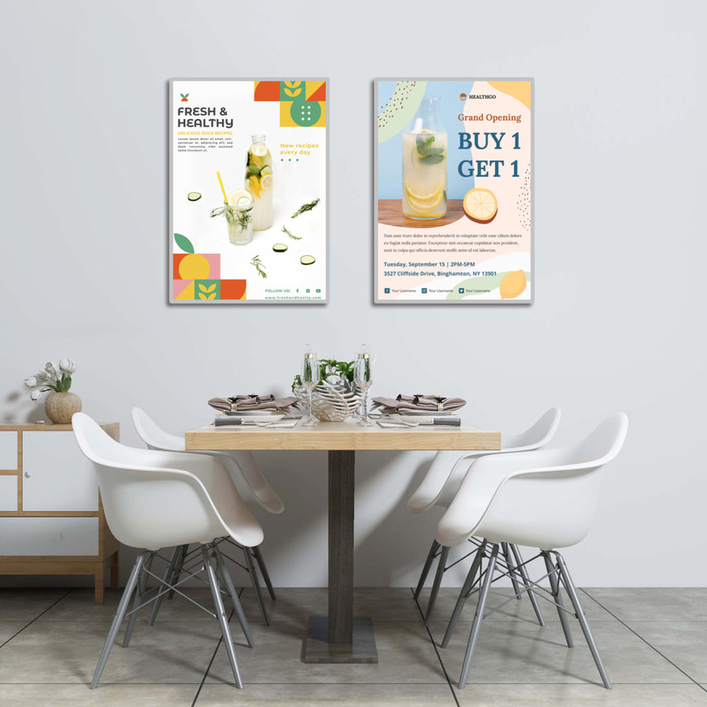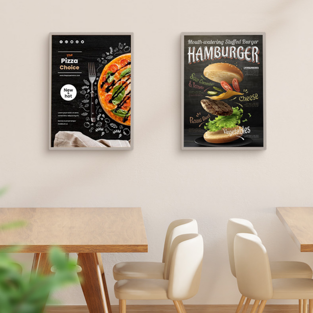 - - Durable Aluminum Frame: Sleek, robust design with a snap-open feature for easy graphic changes.