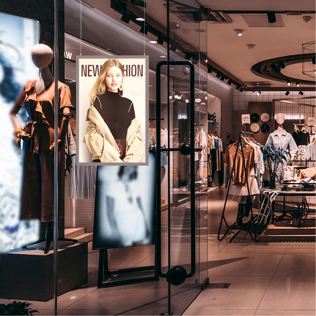 Upgrade your space with our Window Slim LED Light Box—a symbol of contemporary design and enchanting lighting. This slim display box suspended marvel merges stylish aesthetics with state-of-the-art energy efficiency LED innovation, projecting a dynamic radiance onto your visuals. Its lightweight yet robust build guarantees effortless setup, while the adaptable dimensions cater precisely to your requirements. Perfect for retail stores, retail spaces, exhibitions, or any location where a visually arresting centerpiece is desired. Enhance your brand visibility with this Window Slim LED Light Box, transforming mundane presentations into remarkable exhibitions that demand notice. Shine a light on your message and enthral your spectators with the window light box display solution.