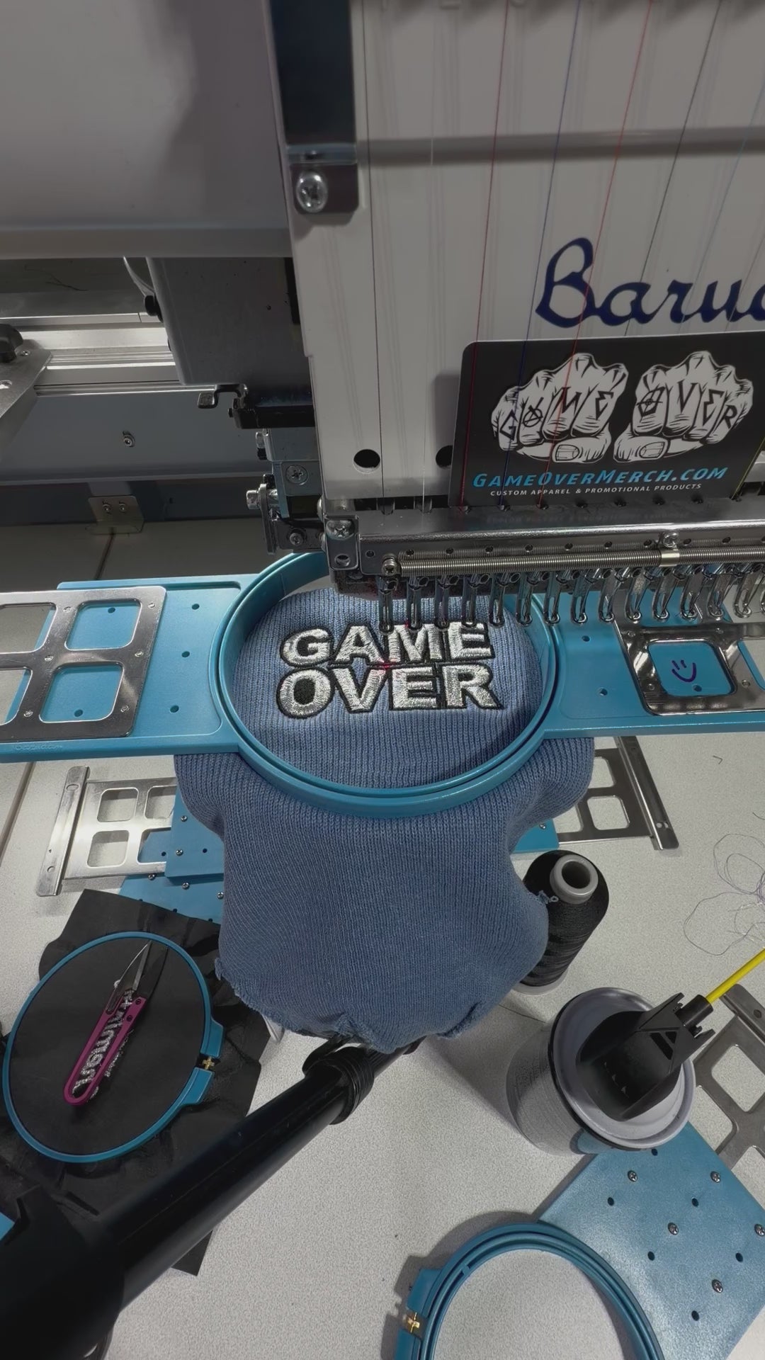 Our Game Over Tinsel Beanie takes 30 minutes each to complete the embroidery. Running at 900 rpm’s, it takes 30 minutes to sew 17,630 stitches. Each piece is made with care and love, and will protect your crown chakra.