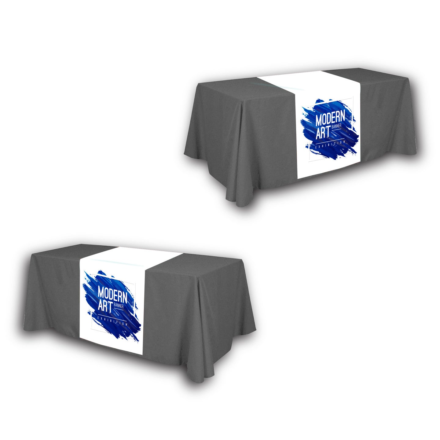Table runners are a cost-effective and customizable way to enhance branding efforts at events and exhibitions. Custom table runners, available in various sizes, are printed in full color using dye sublimation technology. The printed table runner features your company logo or branding, adding a touch of sophistication to your display and helping to promote brand recognition. Additionally, they can be strategically placed on the tablecloth to highlight critical products or materials on your display, creating a more visually appealing layout.